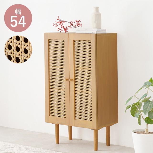 天然ラタン かごめ編み キャビネット 幅54 収納棚 リビングボード サイドボード 棚 収納 サイドチェスト サイドキャビネット ナチュラル 木製 脚付き 籐 おしゃれ(代引不可)【送料無料】