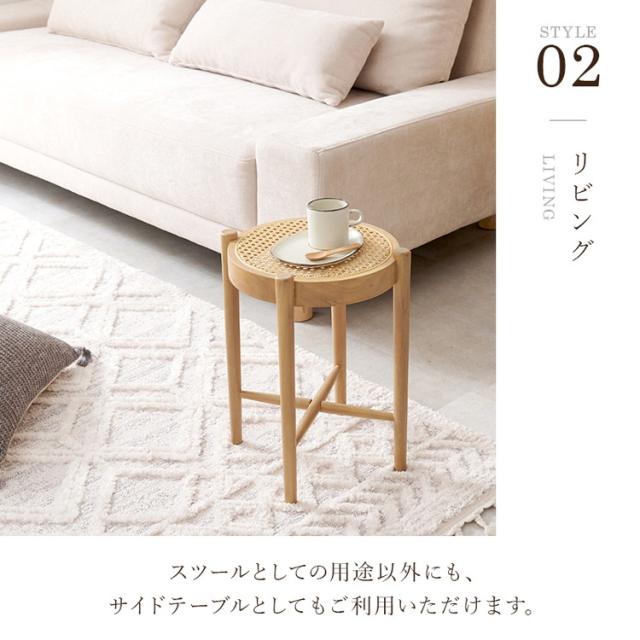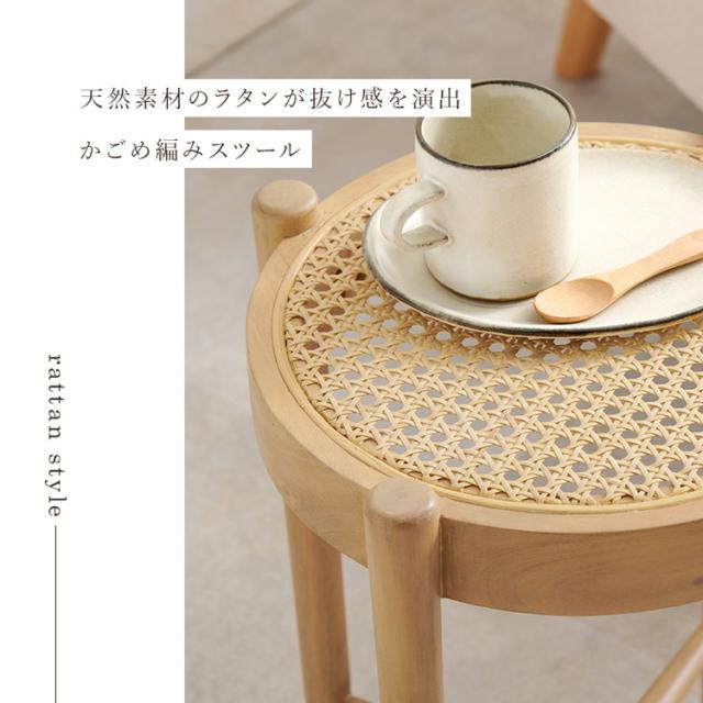 天然ラタン かごめ編み スツール ラタンチェア 椅子 イス チェアー サイドテーブル 玄関スツール コンソール 天然木 ナチュラル 木製 籐 おしゃれ 韓国インテリア(代引不可)【送料無料】