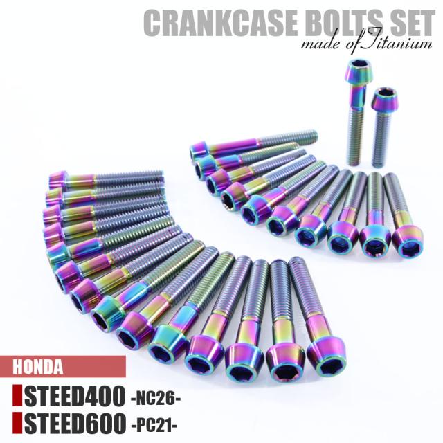 チタンボルト ホンダ スティード400 NC26 スティード600 PC21専用 クランクケース エンジンカバー ボルト セット 26本 焼き色 軽量化 ネジ レストア