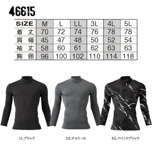防寒 冬用 インナーシャツ 長袖シャツ 46615 発熱モックネック インナー 抗菌 反射プリント 速熱 発熱 蓄熱 秋冬 作業服 作業着 アタックベース【送料無料】