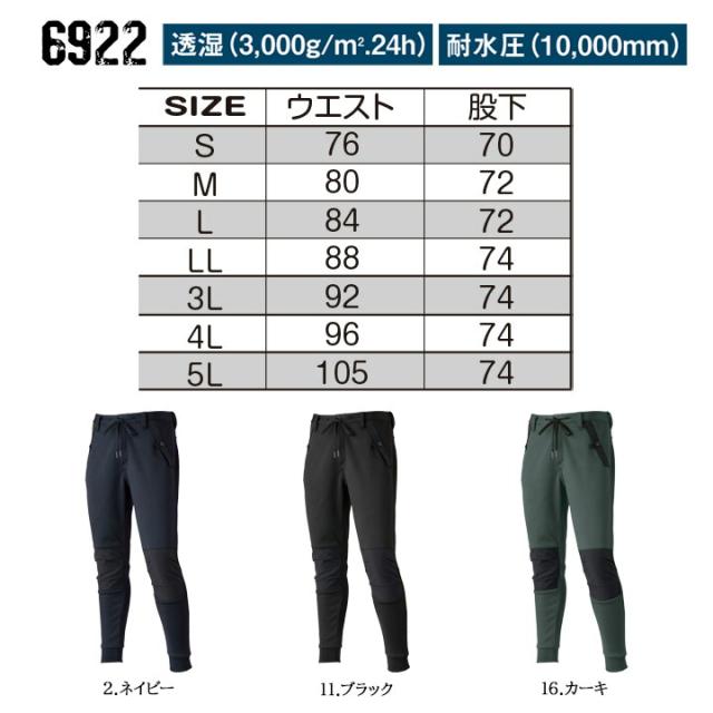 作業服 ズボン ワークパンツ ジョガーパンツ 6922 ウインドブロックギア ストレッチ 防風ボンディング 秋冬 ズボン 作業服 作業着 アタックベース