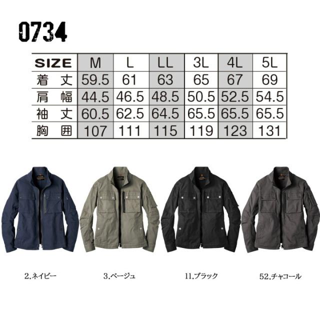 作業服 ブルゾン 長袖 734 ストレッチ長袖ブルゾン ストレッチ オールシーズン ジャケット ジャンパー 073シリーズ 作業服 作業着 アタックベース
