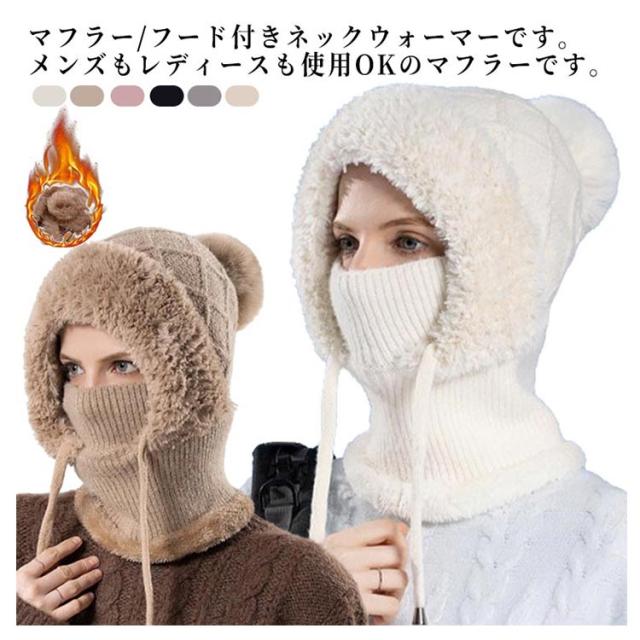 冬用 フードウォーマー ふわふわ 耳あて付き帽子 スノーボード フード付きネックウォーマー 防寒 秋冬 フードウォーマー 暖かい ボア 厚手 スノボ マフラー スヌード フェイスカバー フードウォーマー スキー アウトドア キャンプ 可愛い レディース メンズ 通勤 冬