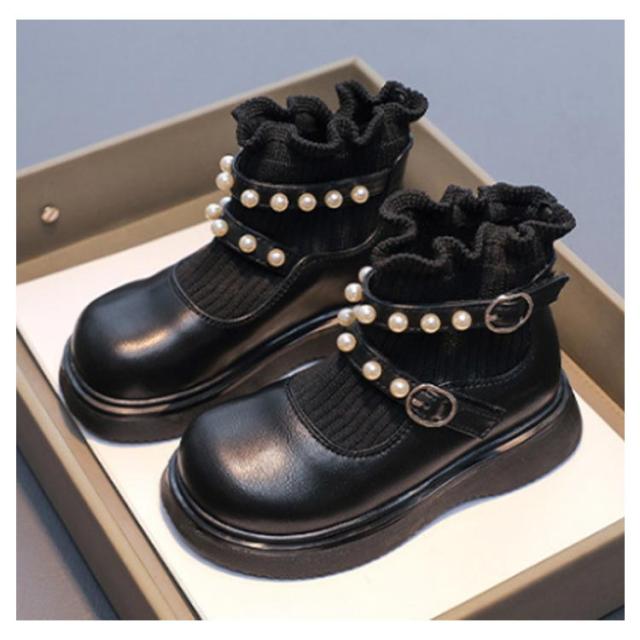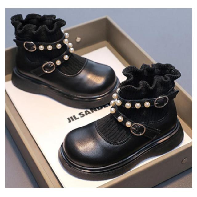 | 15.2-23cm!履き口フリルが可愛らしいショートブーツ。 足首部分がニットとなっているので、程よく足にフィットし履き心地の良さを実現します。 アッパーはPUレザーで作られて、長時間履いても快適です。 裏起毛なので防寒対策ばっちり♪ 防滑性と耐磨性に優れたソール、雨や雪などの濡れた地面で歩行をサポートして安心で歩行できる。 普段履きから通園、通学、お出かけ用まで幅広く活躍してくれます。 | |