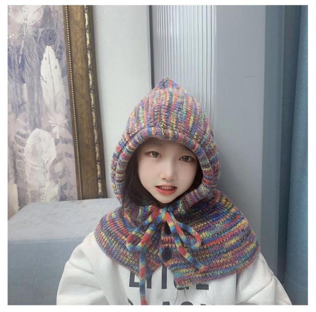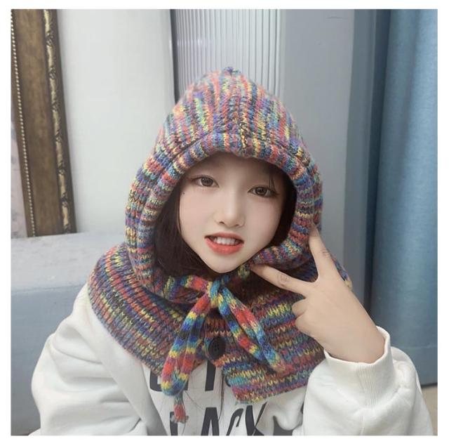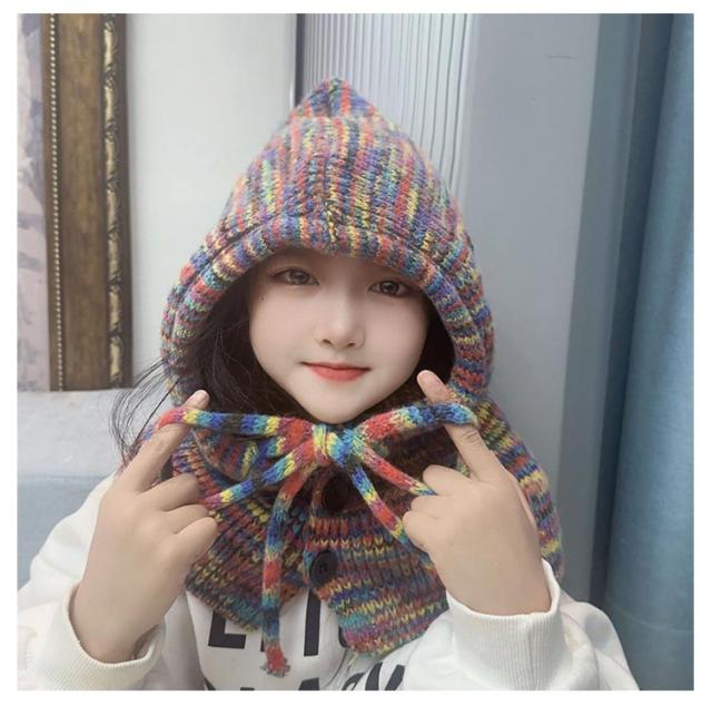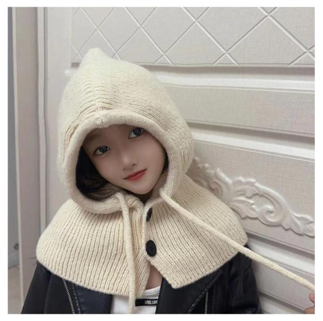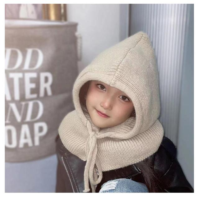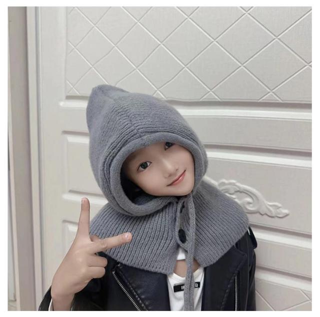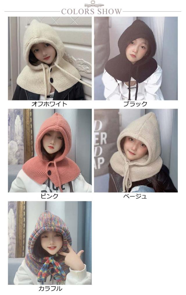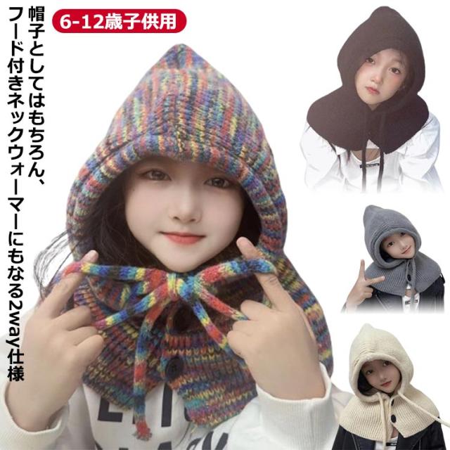 バラクラバ ネックウォーマー キッズ フード付き かわいい ニット帽 6-12歳 くすみカラー 韓国 ニット 帽子 おしゃれ 2way バラクラバ フードウォーマー あったか 防寒 自転車 スキー 暖かい 防寒対策 秋 冬