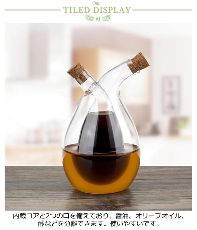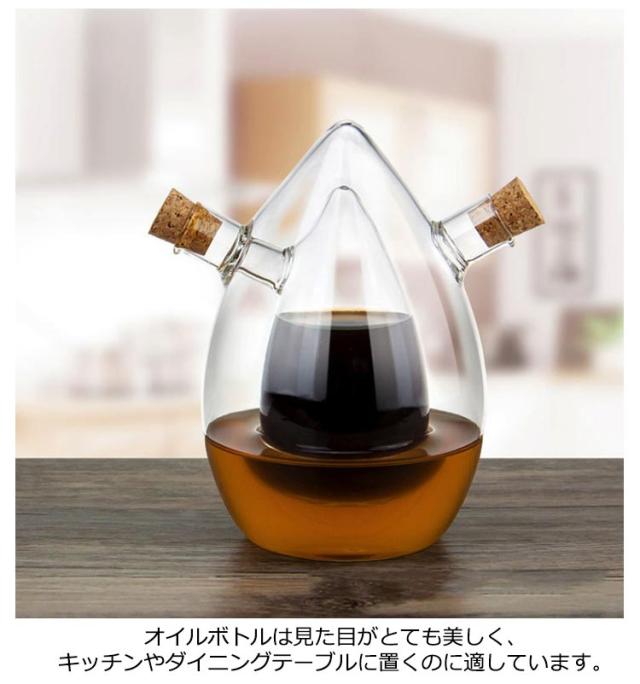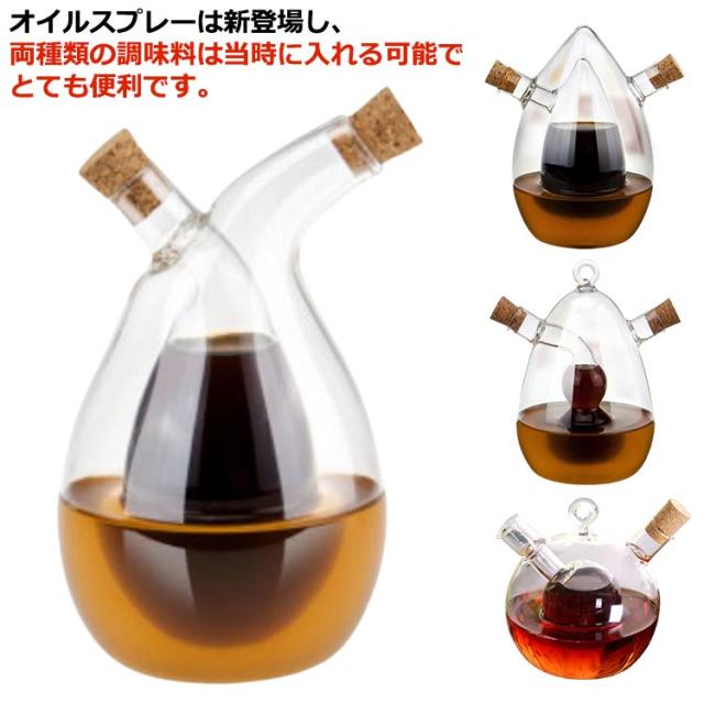 耐熱 両用 2in1 調味料入れオイルボトル おしゃれ 酢ボトル ガラス オリーブオイル 透明 オイル差し 油差し 防塵 油容器 調味料 業務用 家庭キッチン 飲食店 醤油ボトル サラダオイル 食卓用