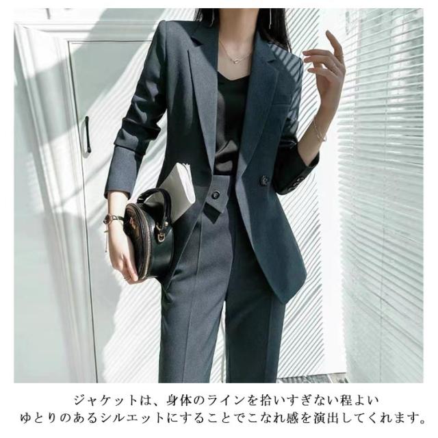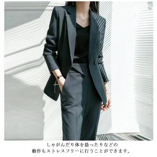 | 見ためはきちんと感のある上品なスーツ 清楚で上品なデザインで洗練された大人の女性シルエットを演出します。 ジャケットは、身体のラインを拾いすぎない程よいゆとりのあるシルエットにすることでこなれ感を演出してくれます。 ポリエステル素材を採用する。シワになりにくくお手入れ楽ちん。 しゃがんだり体を捻ったりなどの動作もストレスフリーに行うことができます。 セットとしてはもちろん、シンプルなデザインはお手持ちのジャケット、パンツにも合わせやすい! 卒園式、卒業式、入園式、入学式やリクルート、 通勤などあらゆるシチュエーションに対応できます! | |
