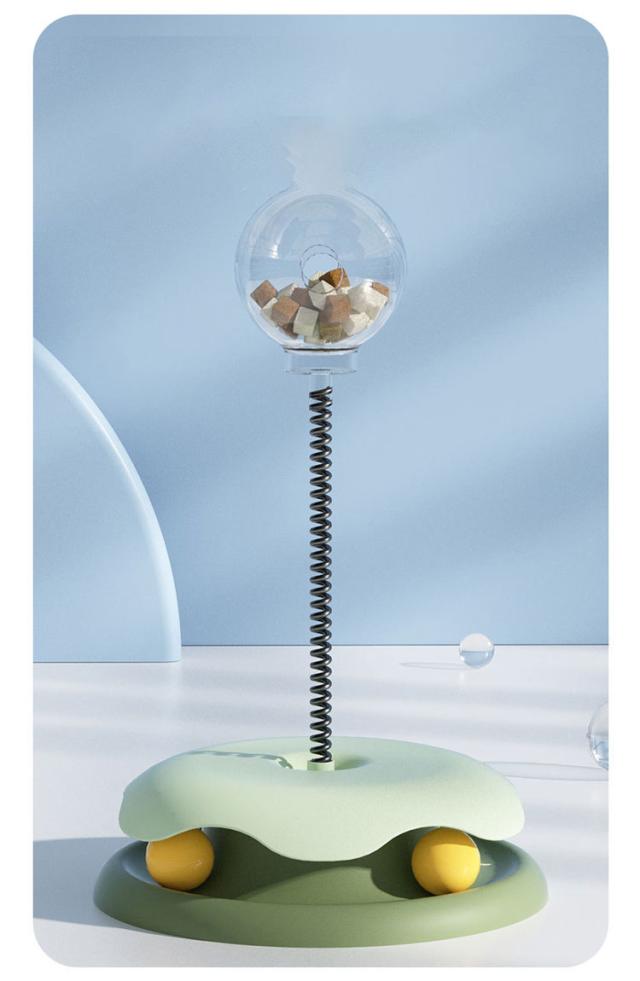 給餌 猫のおもちゃ 猫おもちゃ 回転ボール 猫 ボール ペット ターンテーブルトラック付き 給餌ボール イエロー 運動不足 ストレス解消 玩具 パズルおもちゃ ペット用品 ペット給餌器 猫ひとりで遊べるおもちゃ お留守番対策 ペットグッズ ブルー 猫おもちゃ グリーン