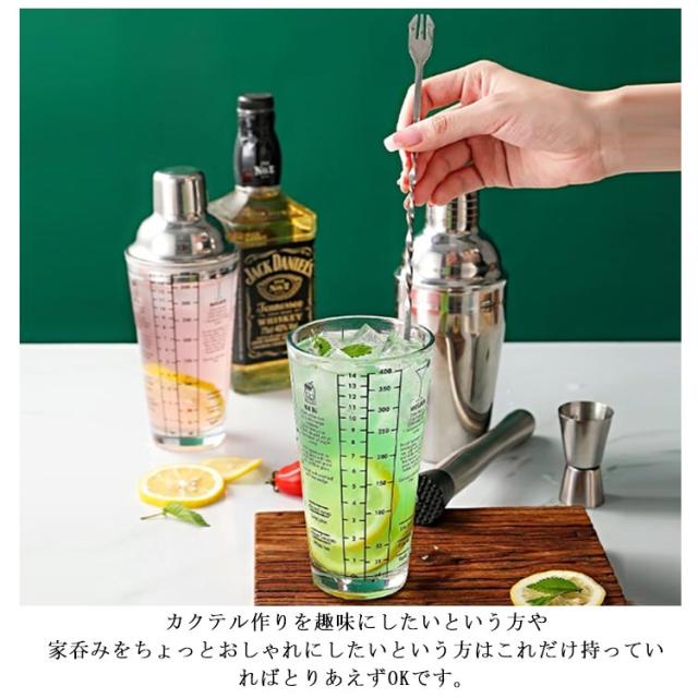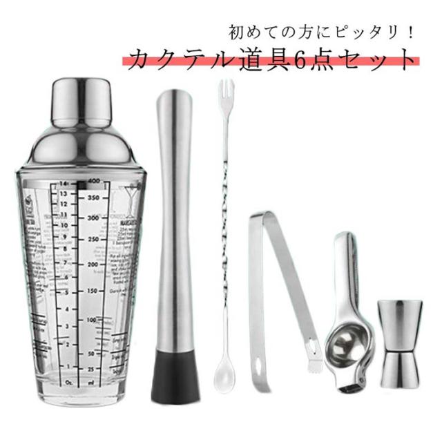 6点セット マドラー おしゃれ メジャーカップ シェイカー セット セット お酒 カクテル 入門 アイストング 400ml レモン絞り器 ステンレス素材 ガラス 初心者 カクテルシェイカー シェイカーセット カクテルセット 550ML マドラー ミキシングストレーナー バーテンダー