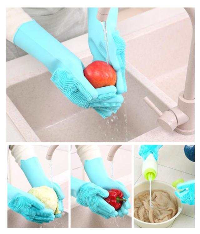 シリコン手袋 キッチングローブ ブラシ付き 掃除手袋 食器洗い 野菜果物洗い 突起付き 左右セット 泡立ちやすい 手荒れ予防 ゴム手袋 キッチン手袋 キッチン グローブ ブラシ 多機能 手袋 掃除グッズ 便利グッズ 雑貨 お風呂掃除 トイレ掃除 家庭用掃除手袋 送料無料