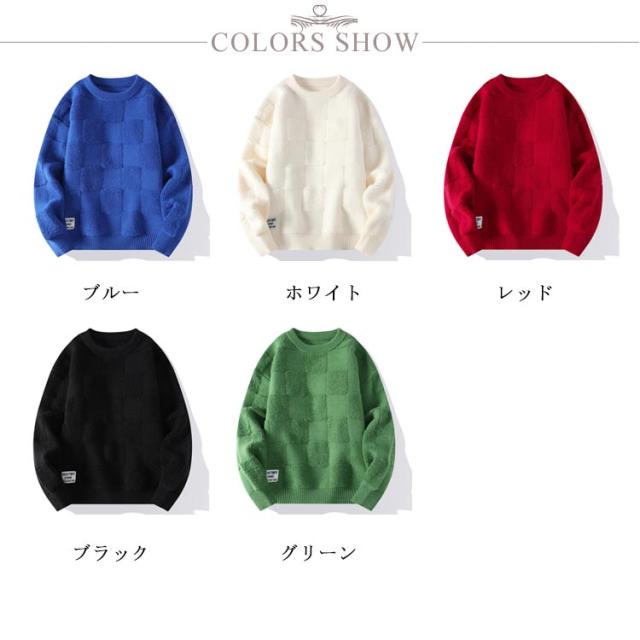 メンズ ニットセーター ニットセーター セーター セーター 秋服 ブロック柄 ニット ゆったり メンズ おしゃれ ロゴ 大きいサイズ 防寒 暖かい 冬服 秋冬 ニットセーター 白 黒 ホワイト ブラック レッド グリーン ブルー