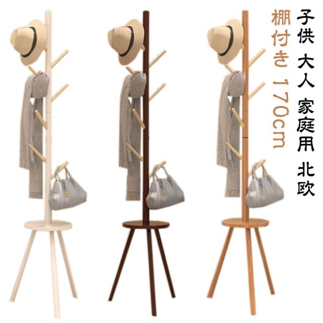 物置 ハンガーラック 木製 木製ハンガーラック コートハンガー ハンガーパイプ 洋服掛け 子供 家庭用 棚付き 衣類収納 玄関収納 パイプハンガー 大人 ハンガーラック 北欧 スリム シンプル 棚付き ブラウン ナチュラル