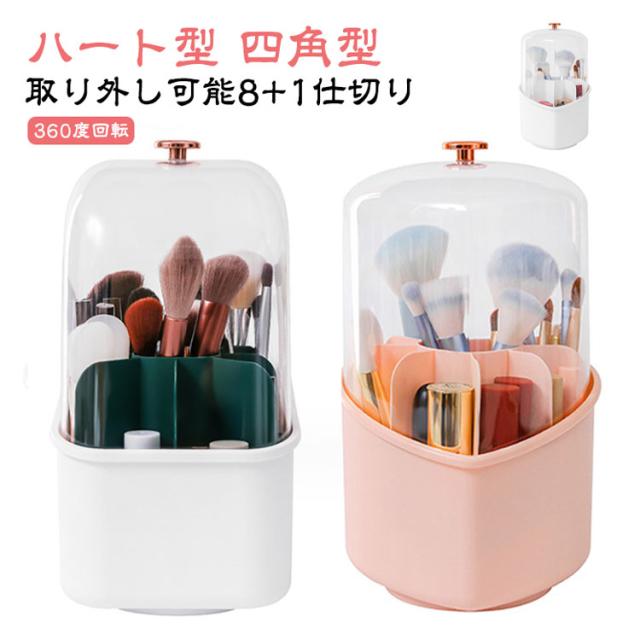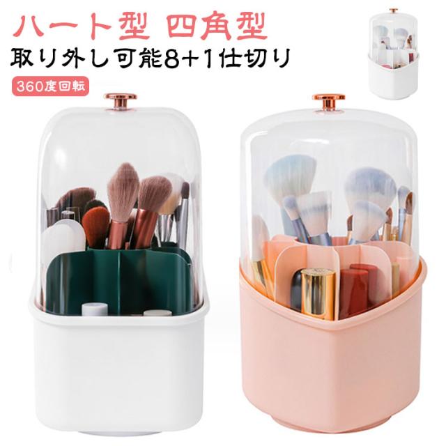 メイクブラシ メイクブラシボックス メイクブラシ立て 360度回転 メイクブラシ ケース 収納 収納 メイクブラシ スタンド メイクブラシ立て ハート型 ふた ケース 蓋付き メイクブラシスタンド 収納ケース 蓋付き