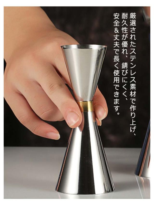 | カクテルの計量に使うメジャーカップ 30/45ML 30/60ML 45/60ML 60/90ML 厳選されたステンレス素材で作り上げ、耐久性が優れ、錆びにくく、安全&丈夫で長く使用できます。 目盛り付き、お酒を計量するためのジガーカップがピカピカしてずっしり高級感が溢れています。 重みがあって扱いやすくて、使うとバーテンダーになったような気分がして、飲み過ぎ防止にもおすすめです。 | |
