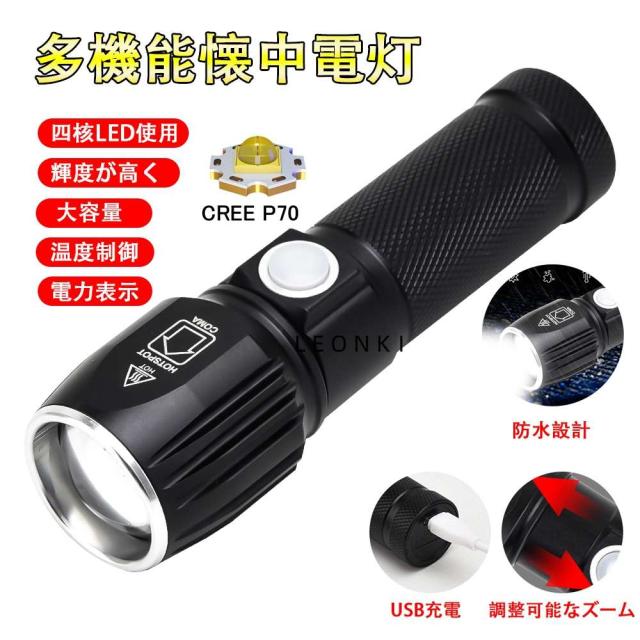 LEDライト 多機能懐中電灯 ハンディライト LED 充電式 超強力 ズーム 多モード 軍用 作業灯 停電 防水 防災対策