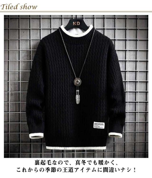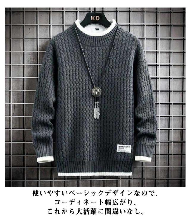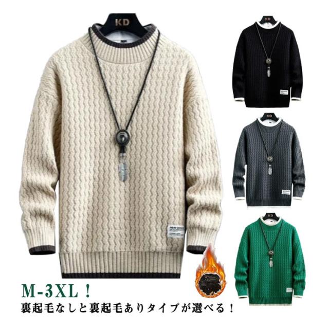 セーター メンズ 長袖 裏ボア 秋冬服 裏起毛 冬服 トップス 厚手 プルオーバー 暖かい 無地 ニット ニットセーター あったか クルーネック 韓国風 カジュアル 防寒 大きいサイズ 春 秋 冬 おしゃれ おしゃれ キレイめ ニットセーター 送料無料