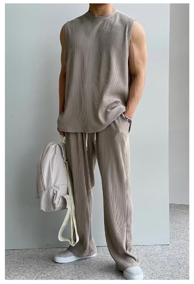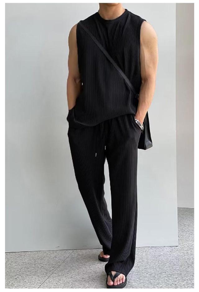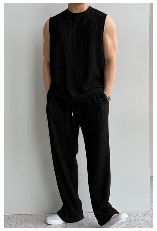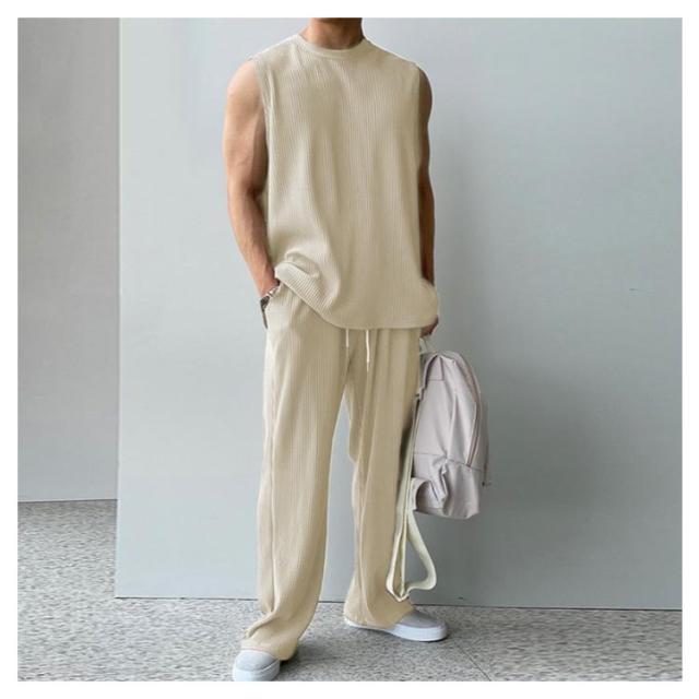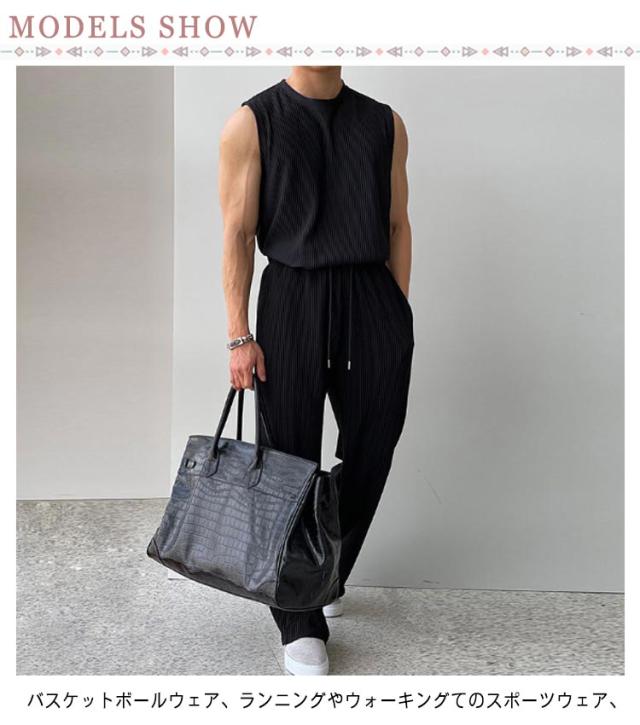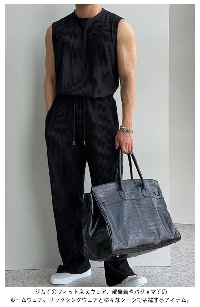 ノースリーブ タンクトップ セットアップ 2点セット ジム 筋トレ 長ズボン 上下セット Tシャツ 通気性 スポーツウェア ゆったり 伸縮性 2点セット 涼しい フィットネス 運動 トレーニングウェア 無地 シンプル