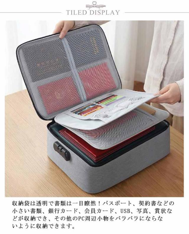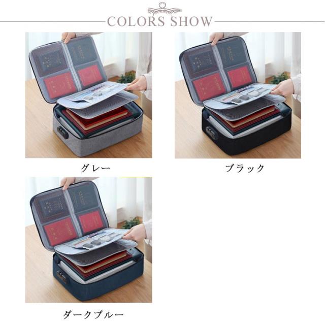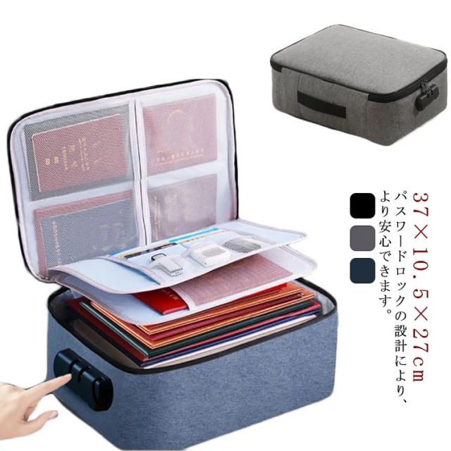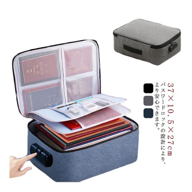 おしゃれ 書類保管ケース 整理 ケース 大容量 パスポートファイルバッグ 3層式 パスワードロック金庫 ファイル 貴重書類保管ケース 書類収納バッグ 安全 安心 分類 旅行便利グッズ 手提げ 収納ケース グレー ブラック ダークブルー