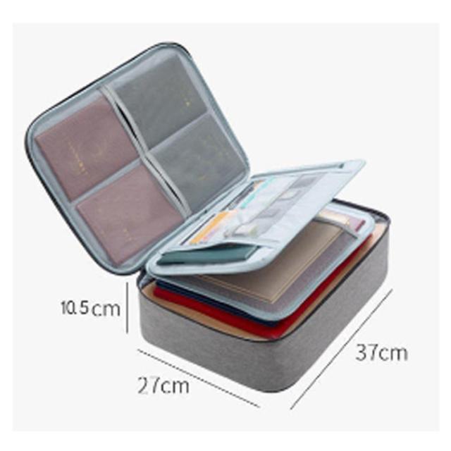 | パスワードロックの設計により、より安心できます。 収納袋は透明で書類は一目瞭然!パスポート、契約書などの小さい書類、銀行カード、会員カード、USB、写真、賞状などが収納でき、その他のPC周辺小物をバラバラにならないように収納できます。 軽量、持ち運びにも便利になります。 ホーム、オフィスまたは出張する時に広く使われています。 サイズ:37×10.5×27cm 3層構造で、収納力が抜群です。 | |