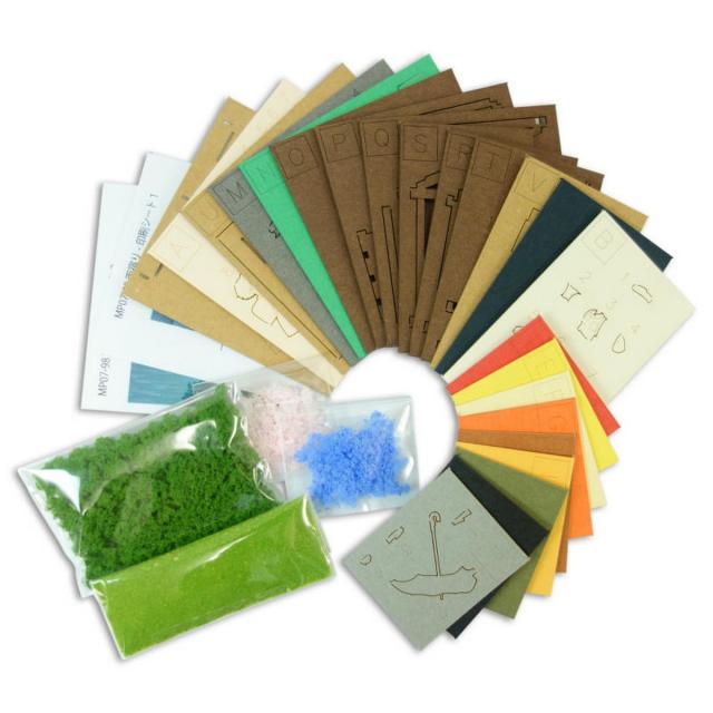 ■セット内容:レーザーシートA〜V(22枚)、ベース(1枚)、印刷シート(2枚)、スポンジ、パウダー、組立て説明書