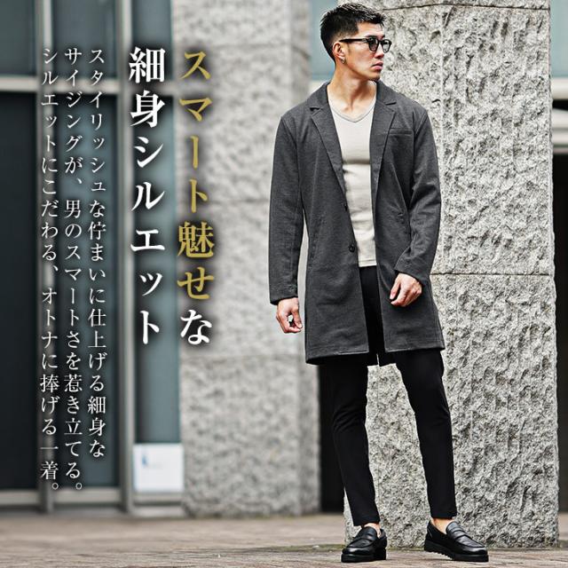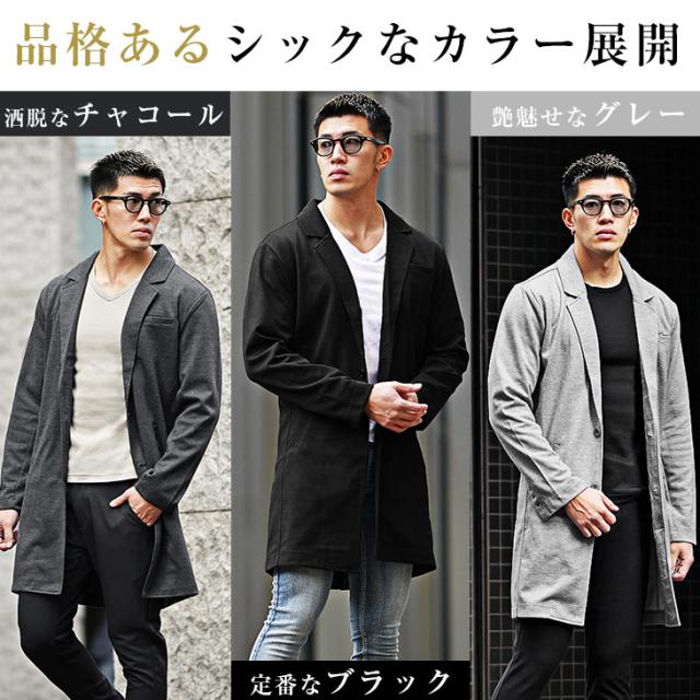 【送料無料】 コート メンズ 春 チェスターコート メンズ 薄手 ポンチ素材 アウター メンズ コート カジュアル 細身 ロングコート メンズ おしゃれ ライトアウター ブラック グレー チャコール メンズファッション 春 春服 春物 お兄系 オラオラ系 ちょいワル 冬新作 新作