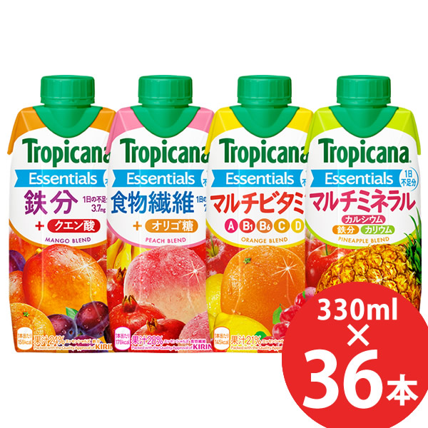 キリン トロピカーナ エッセンシャルズ 330ml×36本 (12本×3ケース) (送料無料) マルチビタミン 鉄分 食物繊維 マルチミネラル オリゴ糖 クエン酸 カリウム カルシウム