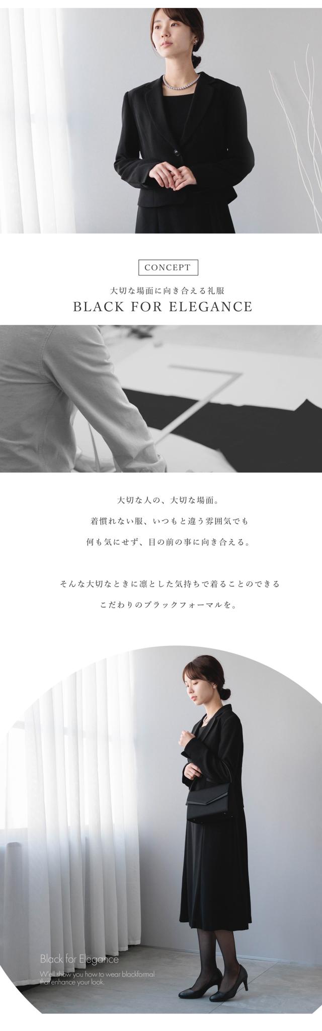 セミフレアラインのワンピースと相まって、柔らかなシルエットのブラックフォーマルアンサンブル