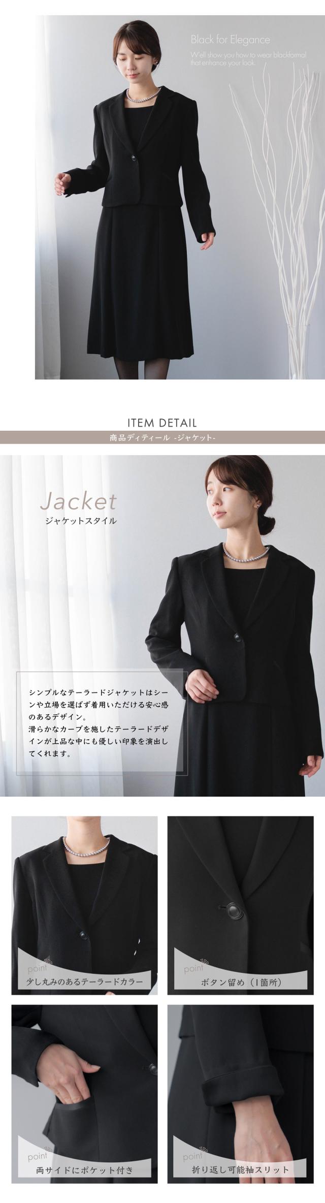 喪服 レディース 礼服 ブラックフォーマル 洗える ウォッシャブル 家庭洗濯 濃染 黒 卒業式 テーラードジャケット 前開き 20代 30代 40代 50代 お葬式 通夜 法事 冠婚葬祭 初七日 四十九日 小学校 中学校 高校 おしゃれ 七分袖 脚長効果 アンサンブル フロントファスナー