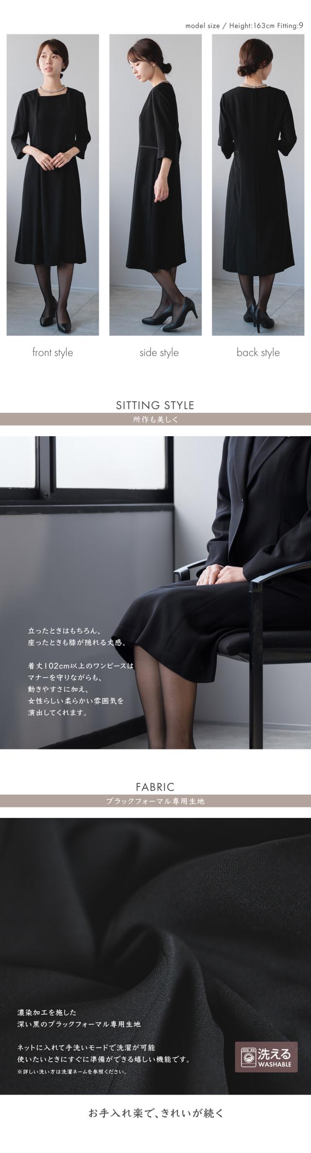 着丈105cm以上のワンピースは動きやすく、更に冠婚葬祭に適した安心感のある着丈