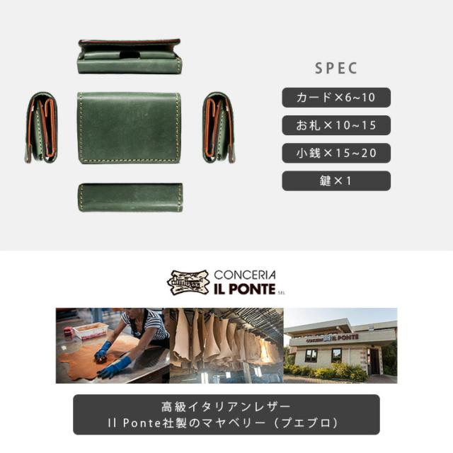 イタリアタンニン鞣し協会に所属している高品質なイタリアンレザーであるIL PONTE社のプエブロ・ベリー ヌバックレザーを使用して製作した2つ折り財布です。
