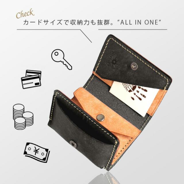 お札、小銭、カードと一通りの収納を備えながらタバコより小さい圧倒的コンパクトさを実現。普段使いのできるキャッシュレス財布となっています。