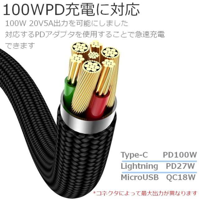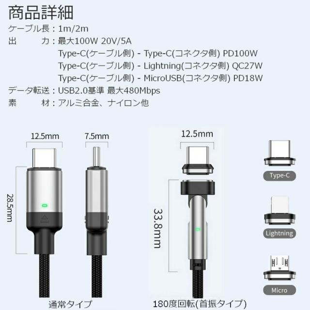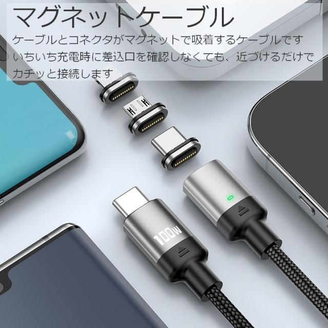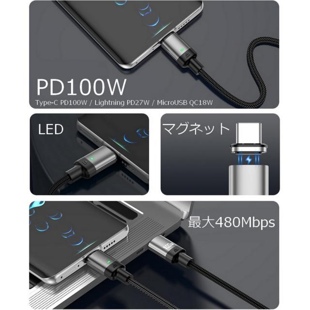 1m 2m PDケーブル マグネットケーブル PD 100W PD急速充電 データ転送 充電 充電ケーブル 両面挿し 磁石 コネクタ 端子 脱着 iPhone USB-C microUSB Lightning ライトニング タイプc Type-C スマホ スマートフォン Android アンドロイド 5a【メール便 送料無料】