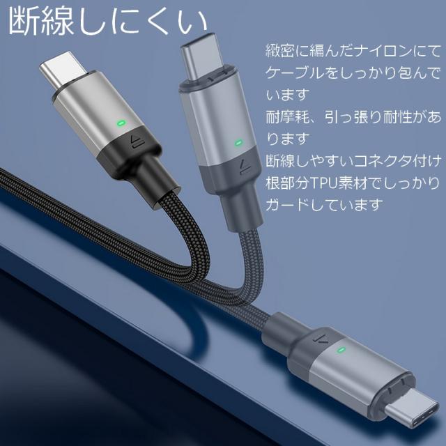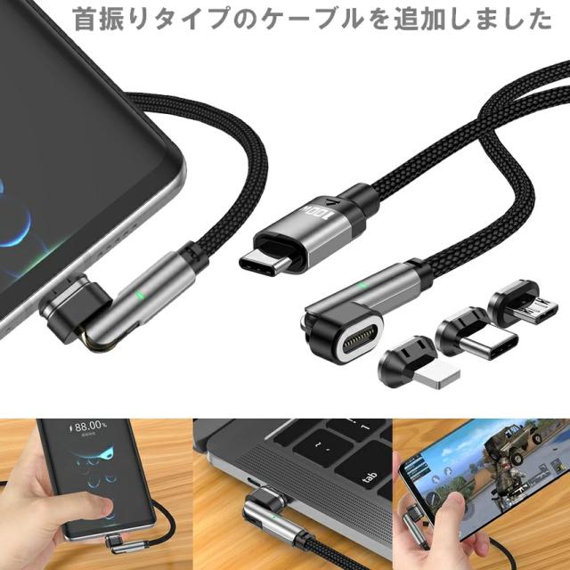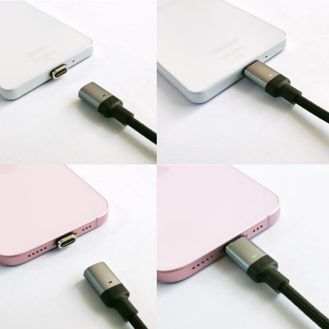 選べるケーブル(1/2m)、プラグ(Type-C、Apple 8pin、MicroUSB)組み合わせ自由です またケーブル、プラグ単体でもお買い求めできます 抜き挿し不要で、近づけるだけでワンタッチ充電ができる! USB PD対応でtype-C端子なら最大100Wで充電可能です Lightningは27Wになります 安定した充電に必要な「eMarker」を搭載しています ゲーム中、料理中、片手作業時にストレスフリーな充電が可能です |