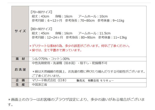 ベビー&キッズ シルクコットン タンクロンパース メール便可 もう手放せない!いいとこ取りのシルクコットン シルクのやわらかさとコットンの丈夫さを合わせ持った、アンダーウェア、伸びの良いリブ生地で、脇に縫い目のない筒編みで仕立てています。4290円の品半額