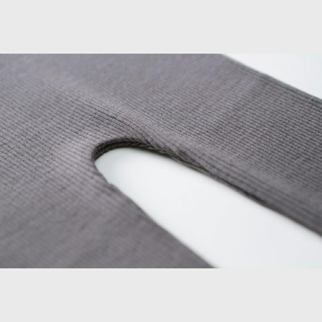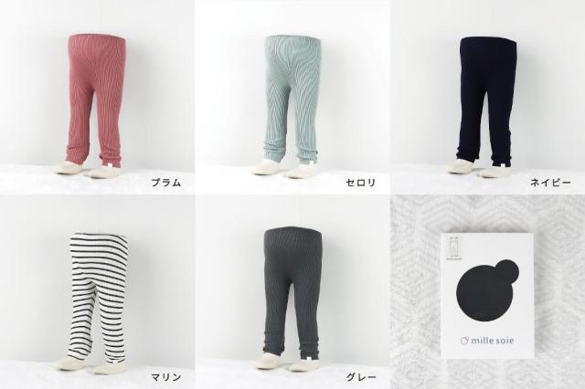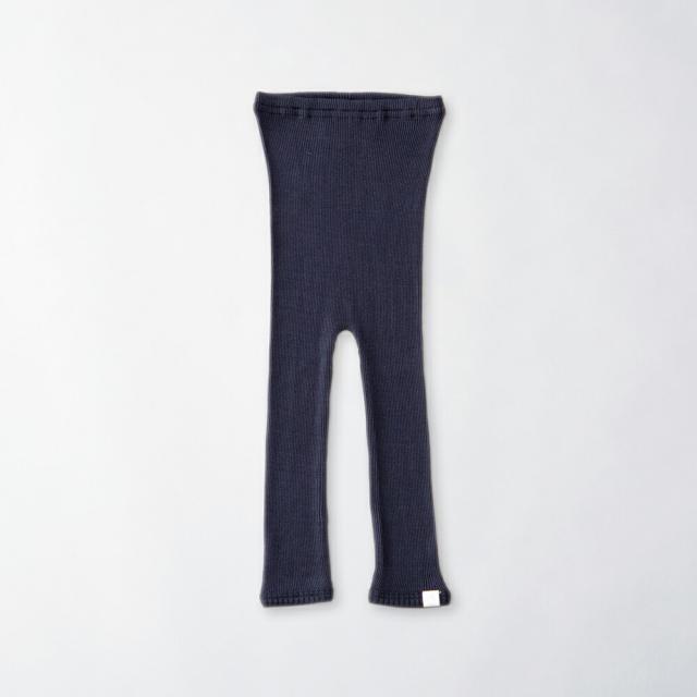 伸びの良いリブ生地で、脇に縫い目のない筒編みで仕立てているので、活発な子どもたちの動きを妨げません。伸び伸びと気持ち良く、快適な時間が過ごせるレギンスです。
