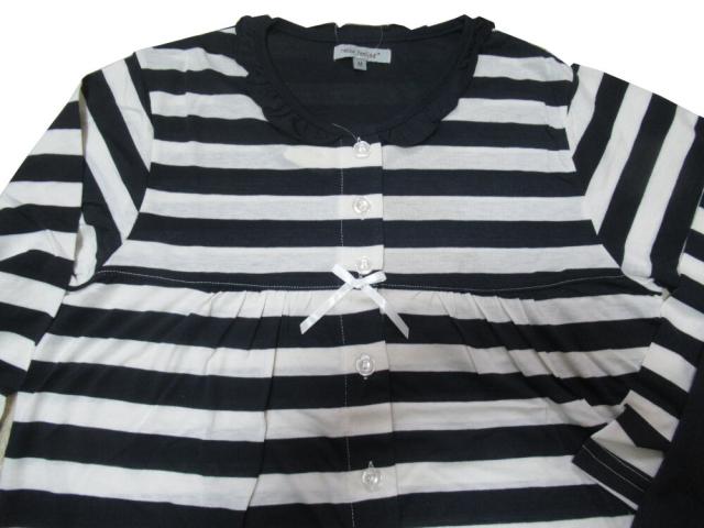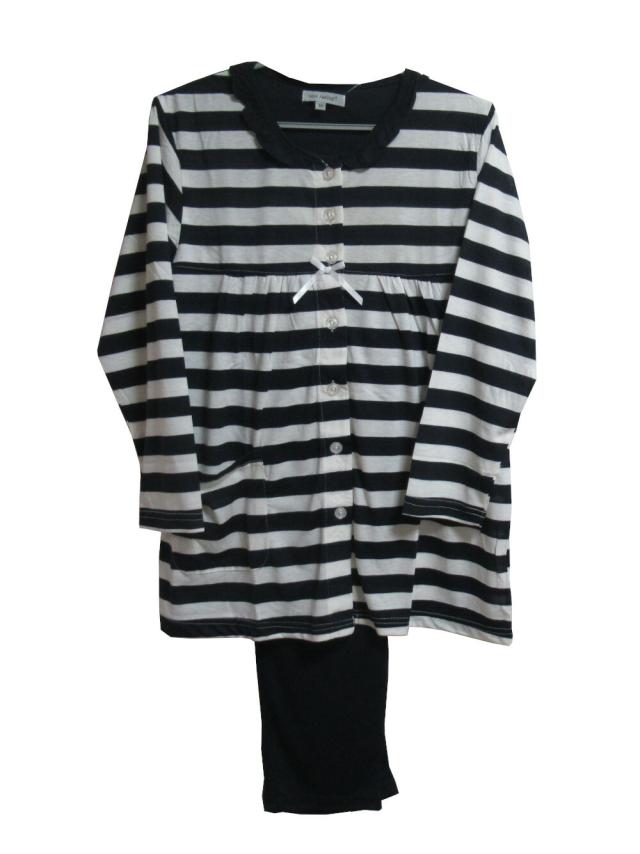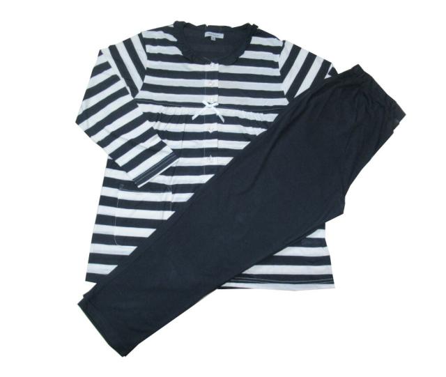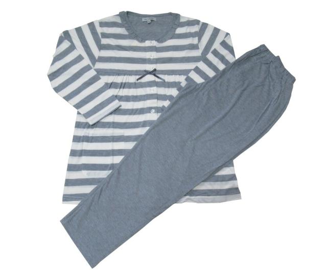 レディース パジャマ 長袖 長ズボン 天竺素材 ボーダー柄 ねまき ネマキ 寝間着 春 秋 ブラック グレー ナイトウェア ルームウェア