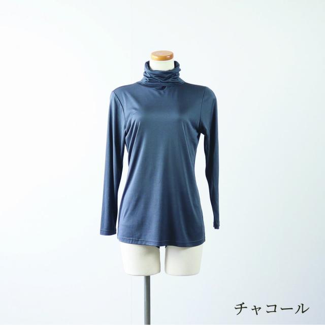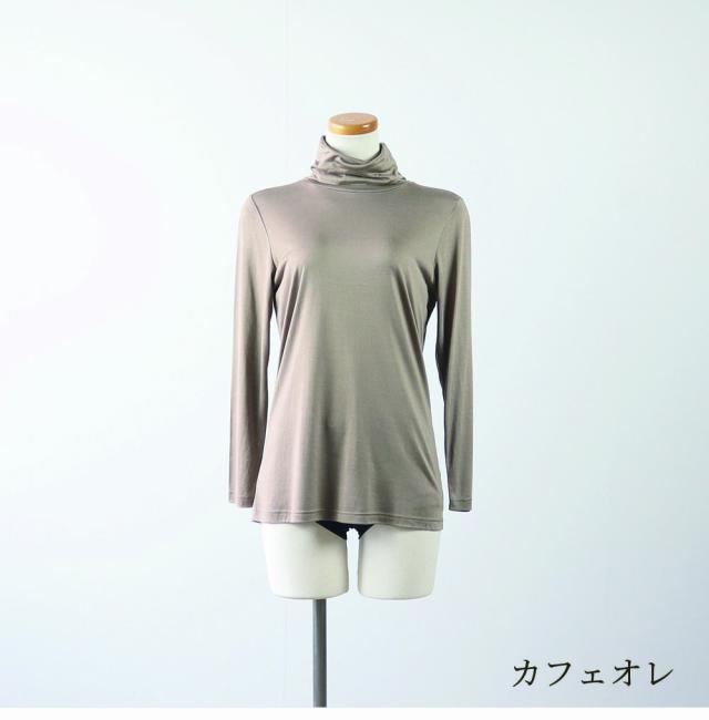 絹 シルク 婦人 肌着 シルク100% タートルネック長袖Tシャツ メール便可 M L LL 長めの着丈でお腹周りもカバーしてくれます。