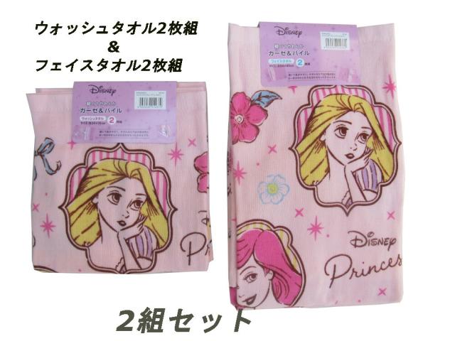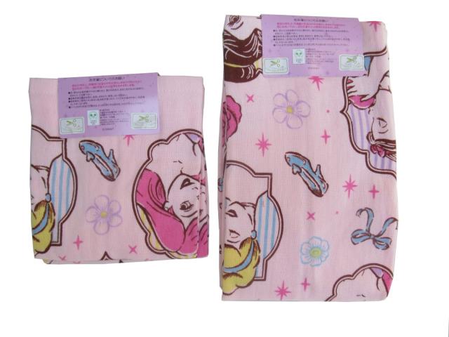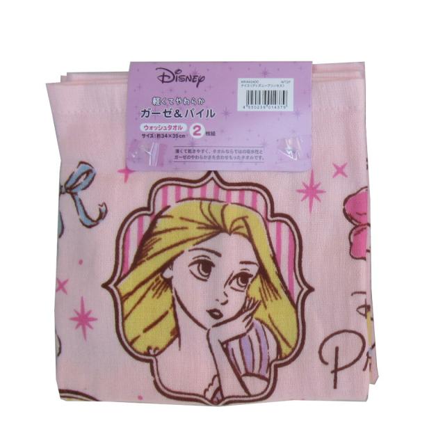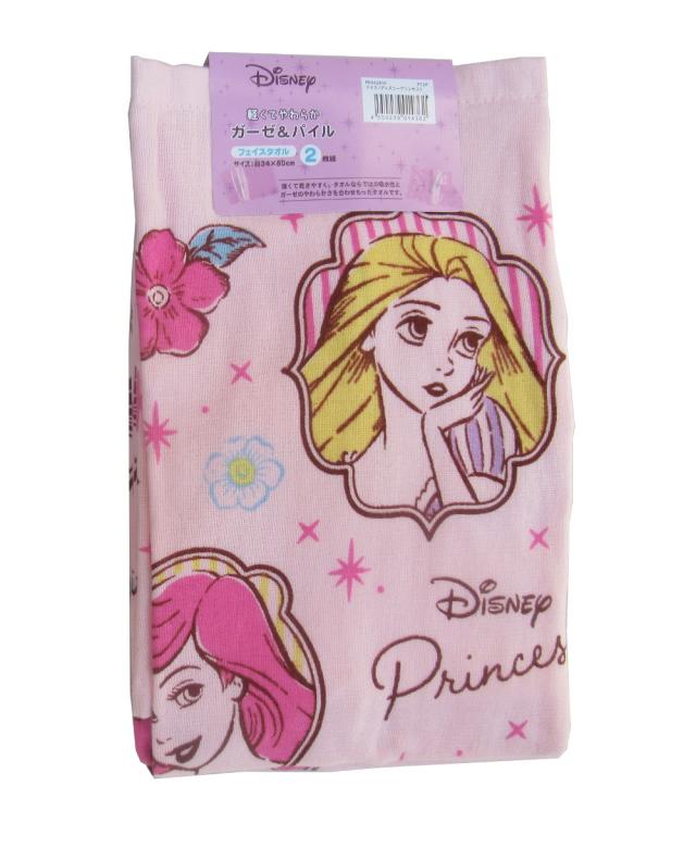 フェイスタオル34x75cm 2枚組み ウォッシュタオル34x35cm 2枚組み 2点セット ナイス プリンセス 綿100% ガーゼプリント 裏パイル Disney ディズニー