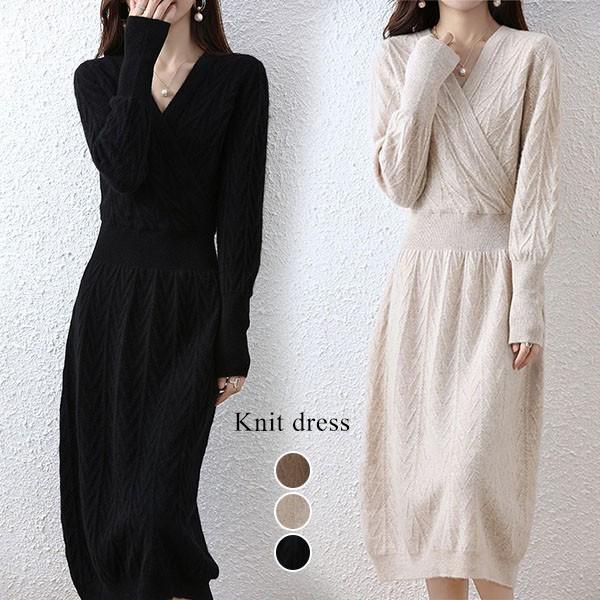 ワンピース 春 オシャレ ワンピ 長袖 ワンピース ニット 体型カバー 大人 上品 30代 20代 bg133zezed7