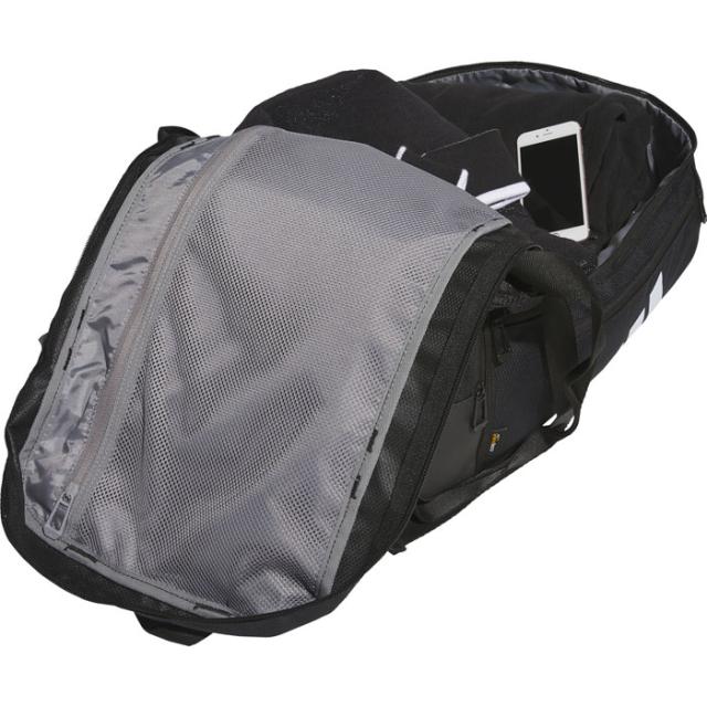開口部が大きくシューズ、ウェア、ギアなどを簡単にパッキング可能。