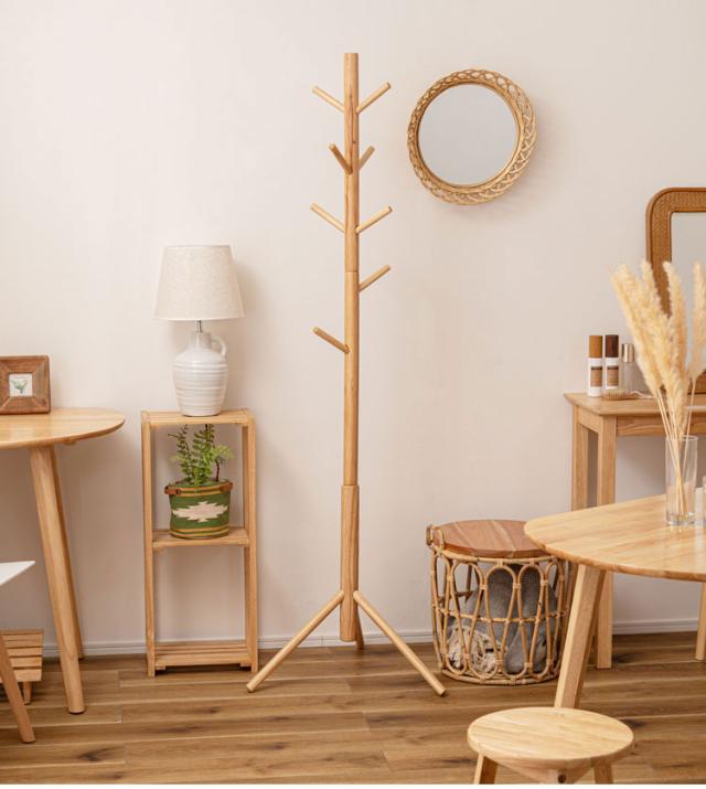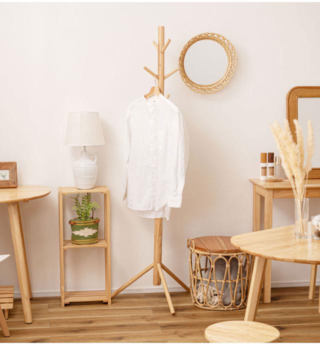 ポールハンガー 天然木 ねじ込み式 ハンガーラック ハンガーポール 木製 おしゃれ シンプル かわいい インテリア 北欧 洋服掛け 玄関収納 リビング ダイニング コート ツリー 省スペース(代引不可)【送料無料】