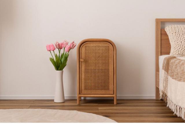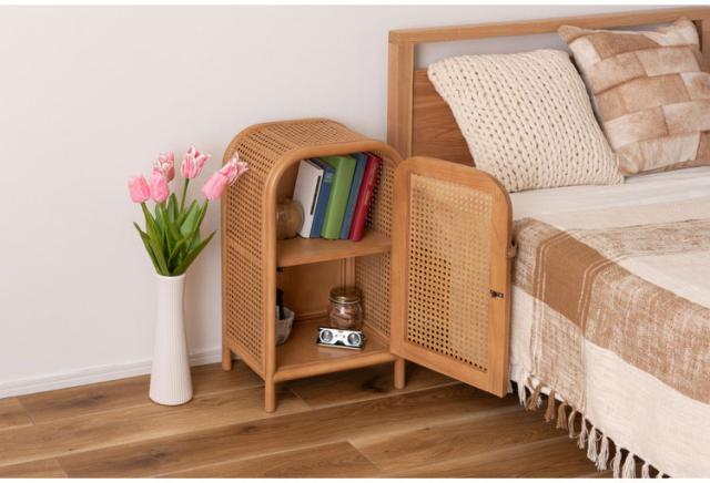 キャビネット 幅36cm チェスト 天然木 ラタン ミニキャビネット 小さめ 小さい かわいい 扉付き 2段 本棚 ベッドサイド 寝室 コンパクト 韓国インテリア ナチュラル 木製(代引不可)【送料無料】