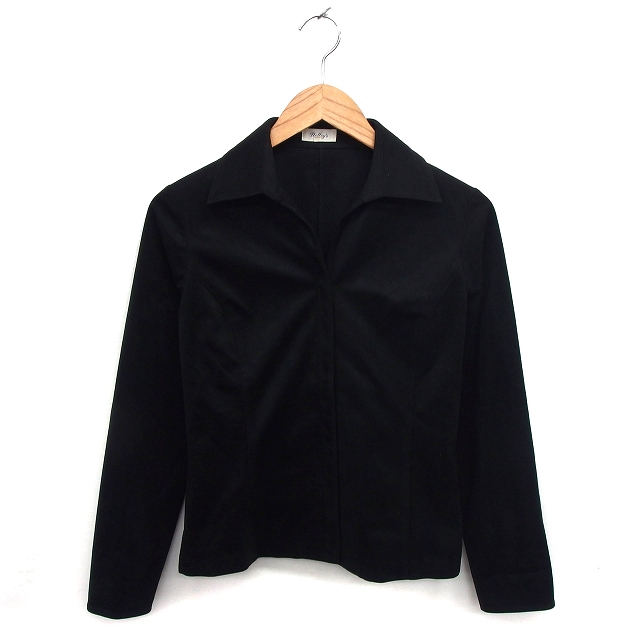 【中古】ノーリーズ Nolley's シャツ ブラウス フェイクスエード オープンカラー 比翼仕立て 長袖 38 黒 ブラック