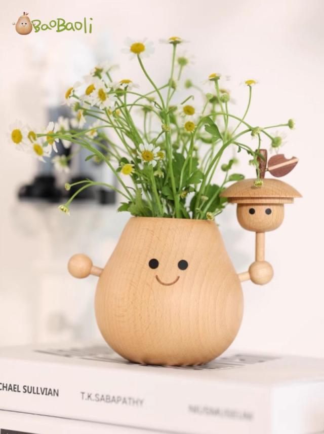 花瓶 おしゃれ フローラ フラワーベース Flora Vase 梨型 置物 デスク オフィス お店 ディフューザー ガラスボトル付き 木製 おもしろ