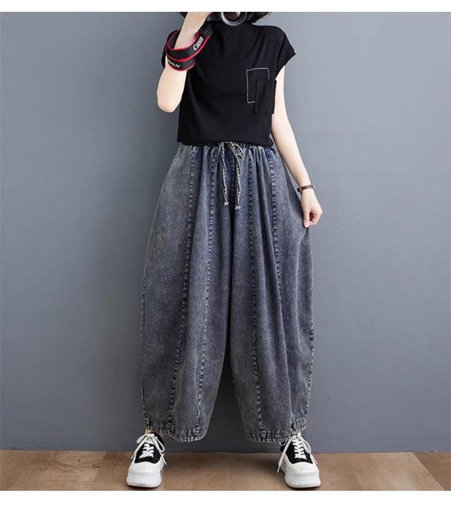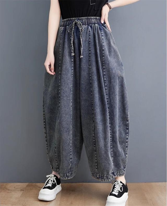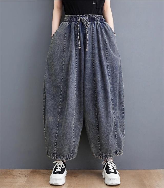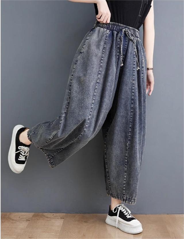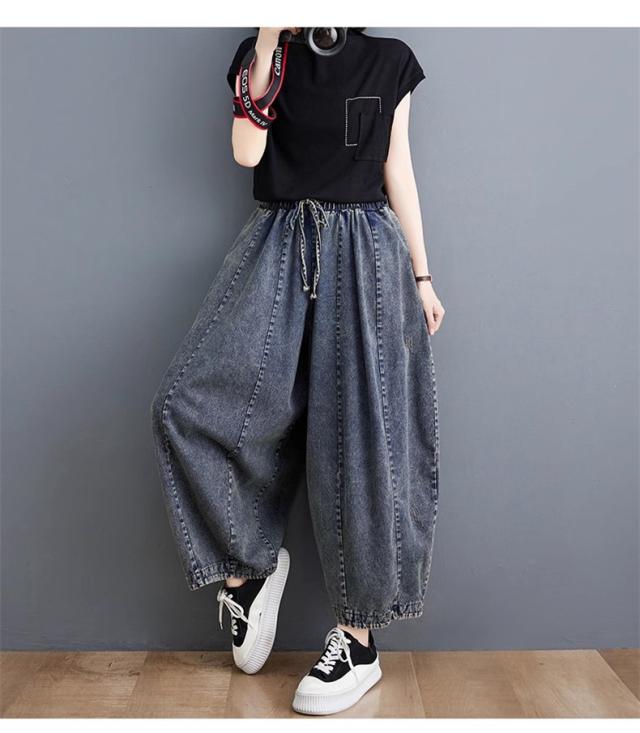 デニムパンツ レディース ボトムス ズボン ジーンズ ワイドパンツ ウエストゴム サーカスパンツ ゆったり リラックスシルエット シンプルでオシャレ