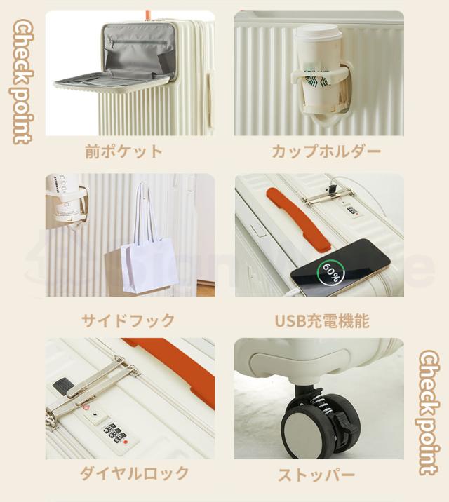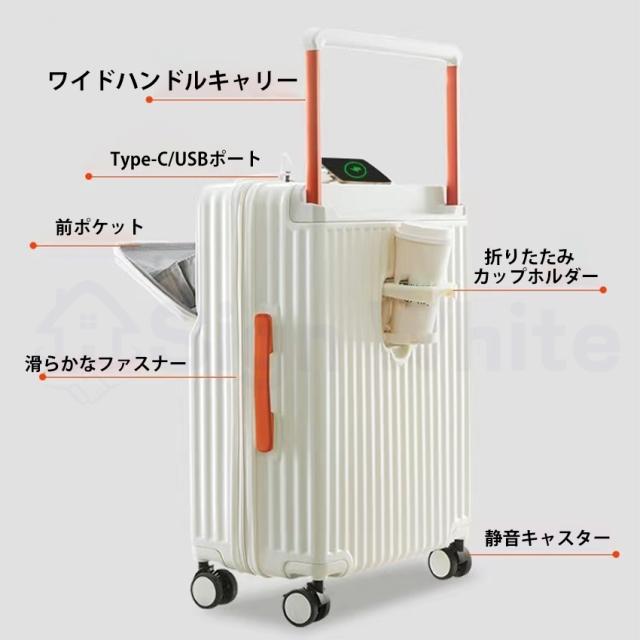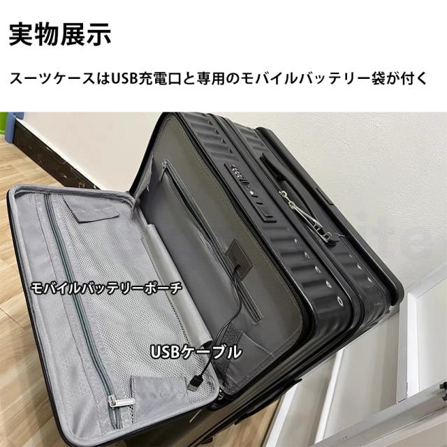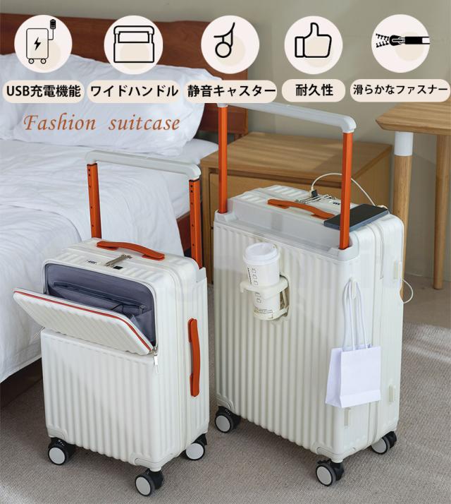 多機能 スーツケース キャリーケース フロントオープン ワイドハンドルキャリー ストッパー付き USBポート付き
