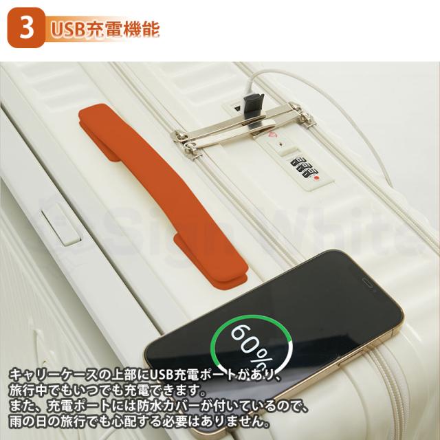 キャリーケースの上部にUSB充電ポートがあり、旅行中でもいつでも充電できます。また、充電ポートには防水カバーが付いているので、雨の日の旅行でも心配する必要はありません。