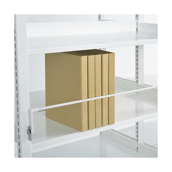 スチールオープンタイプの複柱書架用落下防止バー。棚板の前後に装着可能です。