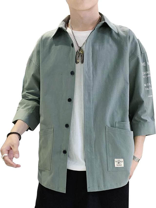 foveitaa 夏服 メンズ 七分袖 シャツ リネンシャツ メンズ 吸汗速乾 汗染み防止 快適な 軽い 柔らかい かっこいい ワイシャツ カジュア