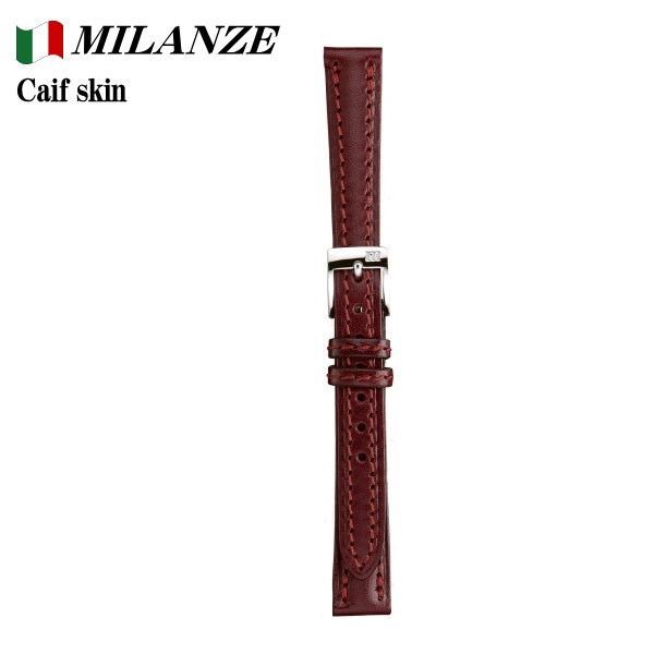 ミランツェ 時計バンド イタリアンカーフ ワイン 時計際幅 12mm 美錠幅 10mm 裏材ヌバック 切り目仕立て バネ棒2本付き ネコポス対応品